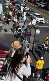 In present day, the only other time this many people gathered in resistance, was at the Womens' Marches in March of 2017. These were also against the same inept orange lying felon in the White House. But this time, today, the numbers of protesters are higher!