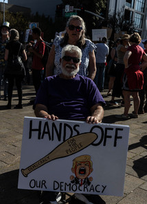 Some were saying that the Vietnam war protests that spanned over a decade were reminiscent of the events happening on this day against tRump. There were many protestors at this event that I spoke to that were there then and they all said the same thing, "I havent seen this much resistance since those days". Whilst talking to my friend, Bob Herr who was at those Vietnam protests, said that "they spanned over a decade until something got done". He add that "they were very similar to what he was seeing at this HandsOff rally" yesterday. We agreed that we hope this change doesn't take as long as those for Vietnam because the prospect of that thought, would no doubt be a complete disaster for this country as we have known it since the beginning. My friend, Kathy Garvin, attended her local 'HandsOff' protest in Eugene Oregon was also at the Vietnam marches in the 60s, she described exactly what Bob said about those protests.