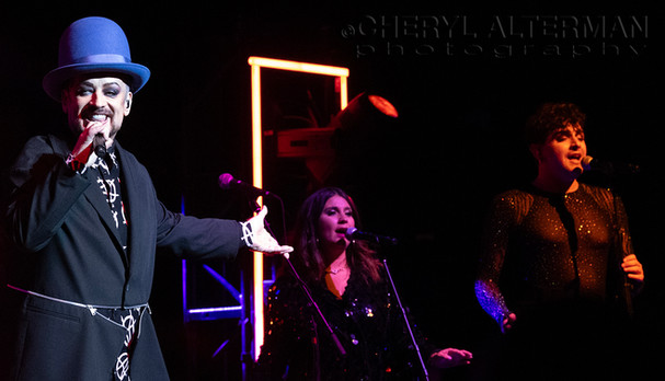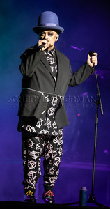 A few interesting things occurred during this performance in Oakland. He sang only five Culture Club songs including two of their big hits, and most of his performance were cover tunes. Songs from Prince, Iggy Pop, and Gary Numan were amongst the selection of cover tunes. He had an 8 piece band and for much of the performance none of them were lighted. He never introduced them either. He also had a couple of costume changes and when that happened a couple of his backing vocalists took the stage. One thing I must mention is his drummer....
