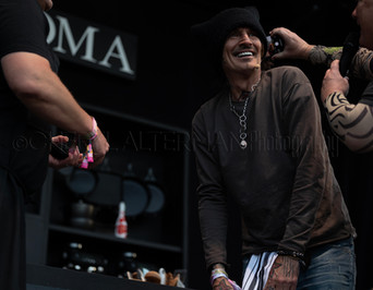 On Day 1 I made sure I was at the Chris Shiflett set as I am a big Foo Fighters fan. He played a bit of country-ish music at first but eventually he rolled into a rockin set. After Chris Shifletts' set was Chevy Metal at the Platinum Stage (smaller than the two largest stages). Nothing was a bigger regret that I didn't get to see as was Chevy Metal. The media didn't get enough notification about the bands and the players in the bands prior to the event. Perhaps in future this can be corrected to help with media coverage. We got some correspondance from the publicists but the information that may have helped about the bands prior to the event was sparce. The main reason that I regret not seeing the Chevy Metal set, was that Shane Hawkins (son of Taylor) was the drummer. I heard about it only after they played. I saw some footage from other photographers back in the media building, and if I would've known Shane Hawkins was their drummer I most certainly would've been at the Prudential stage with my lens focused on the drums. Especially as I was there for Modern Drummer Magazine and of course The Music Soup.